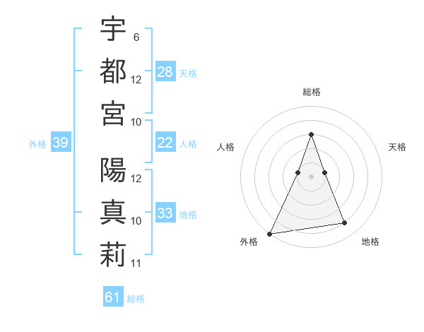 宇都宮 陽真莉さんを姓名の画数から五運を鑑定