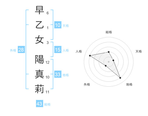 早乙女 陽真莉さんを姓名の画数から五運を鑑定