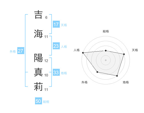 吉海 陽真莉さんを姓名の画数から五運を鑑定