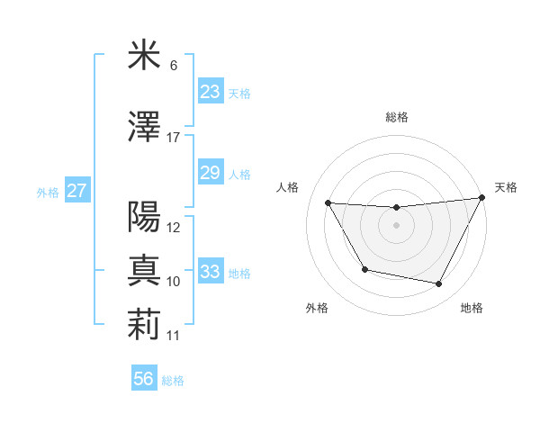 米澤 陽真莉さんを姓名の画数から五運を鑑定