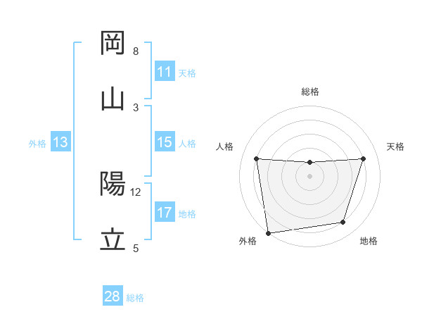 岡山 陽立さんを姓名の画数から五運を鑑定