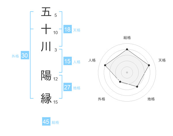 五十川 陽縁さんの総格は45画の4点!