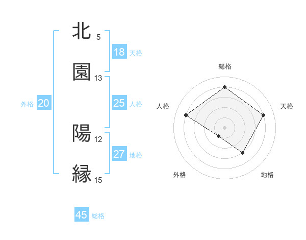 北園 陽縁さんを姓名の画数から五運を鑑定
