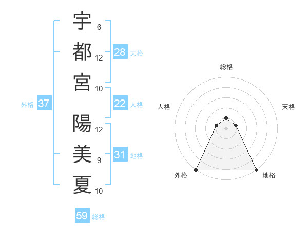 宇都宮 陽美夏さんを姓名の画数から五運を鑑定