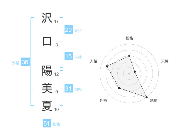 沢口 陽美夏さんの総格は51画の3点!