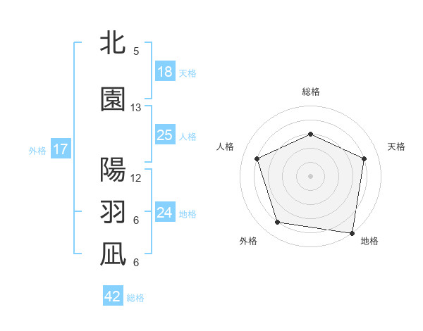 北園 陽羽凪さんを姓名の画数から五運を鑑定
