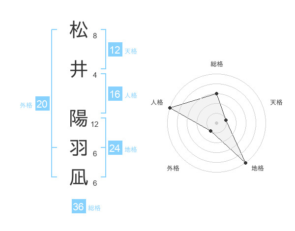 松井 陽羽凪さんの総格は36画の3点!