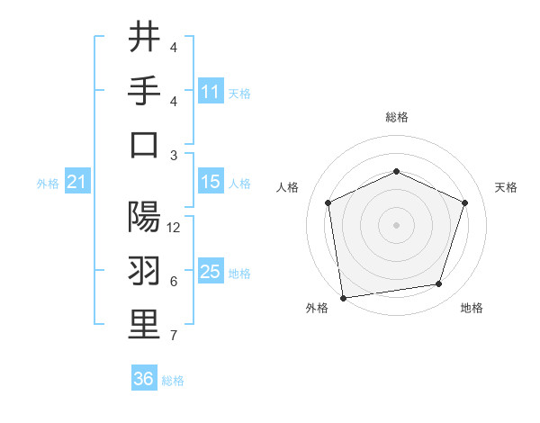 井手口 陽羽里さんを姓名の画数から五運を鑑定