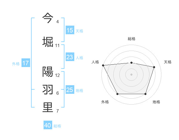 今堀 陽羽里さんを姓名の画数から五運を鑑定