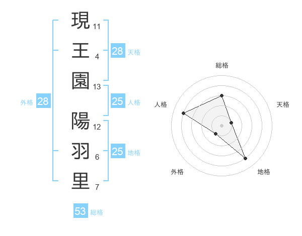 現王園 陽羽里さんの外格は28画の1点!