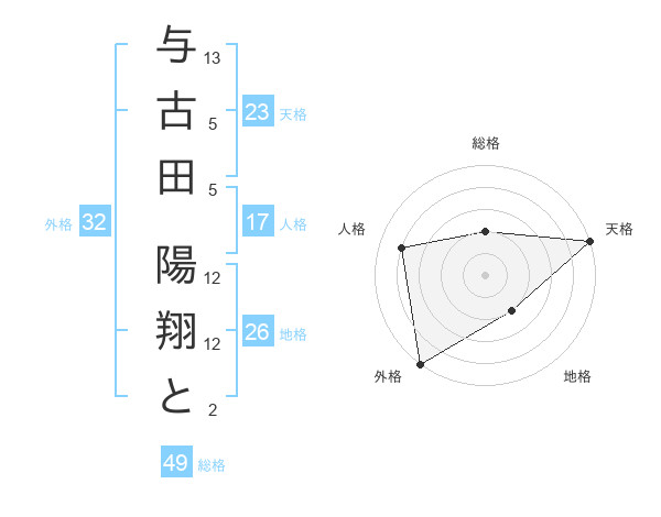 与古田 陽翔とさんの天格は23画の5点!