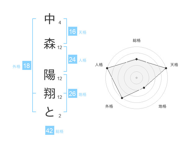 中森 陽翔とさんを姓名の画数から五運を鑑定