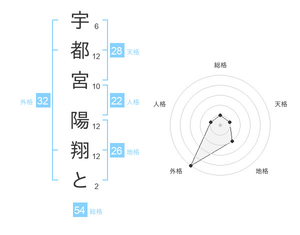 宇都宮 陽翔とさんの外格は32画の5点!