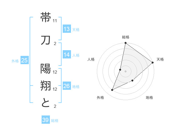 帯刀 陽翔とさんの天格は13画の5点!