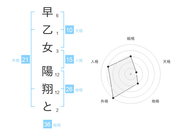 早乙女 陽翔とさんを姓名の画数から五運を鑑定