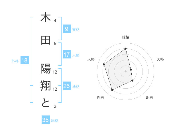 木田 陽翔とさんを姓名の画数から五運を鑑定