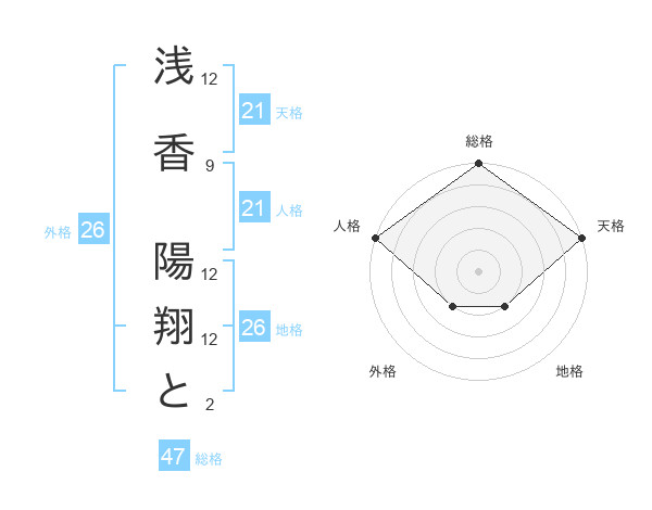 浅香 陽翔とさんを姓名の画数から五運を鑑定