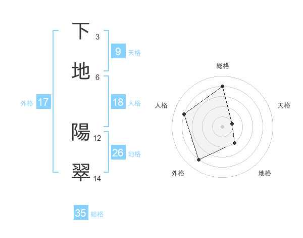 下地 陽翠さんを姓名の画数から五運を鑑定