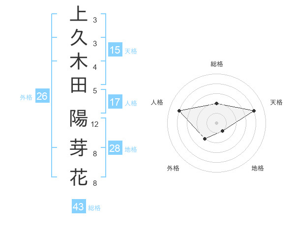 上久木田 陽芽花さんを姓名の画数から五運を鑑定