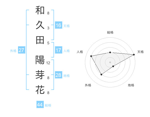 和久田 陽芽花さんの天格は16画の5点!