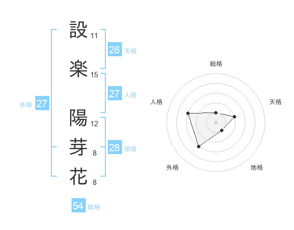 設楽 陽芽花さんを姓名の画数から五運を鑑定