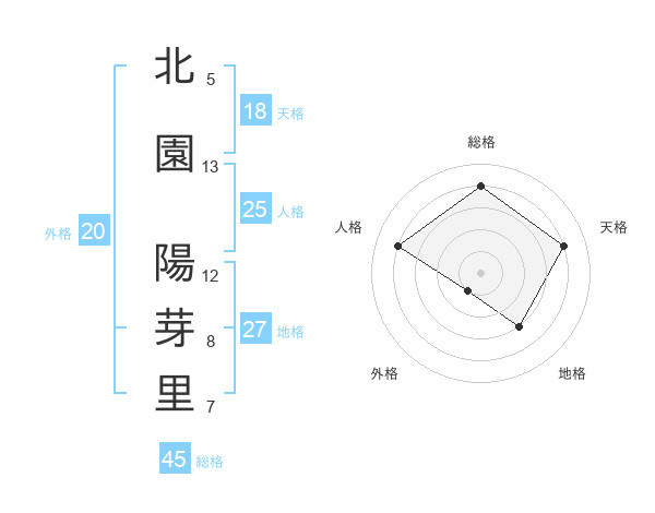 北園 陽芽里さんを姓名の画数から五運を鑑定