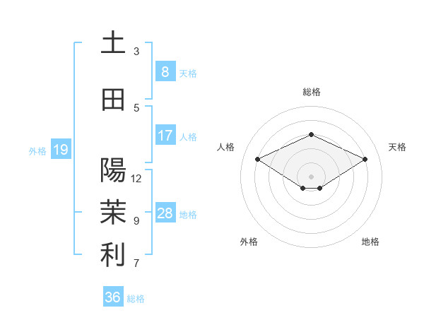 土田 陽茉利さんを姓名の画数から五運を鑑定