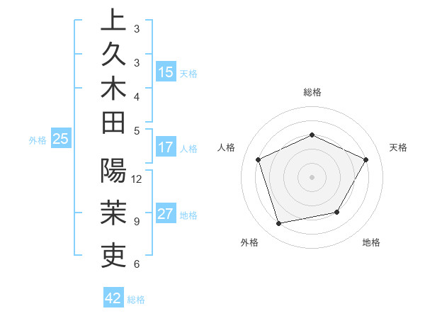 上久木田 陽茉吏さんを姓名の画数から五運を鑑定