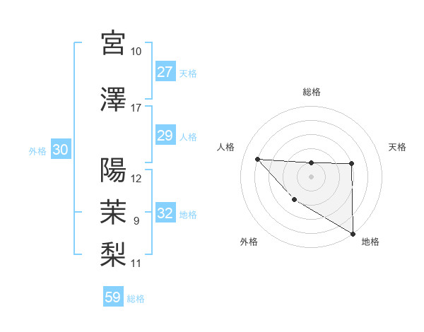 宮澤 陽茉梨さんの総格は59画の1点