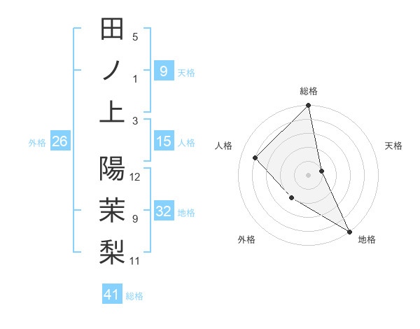 田ノ上 陽茉梨さんを姓名の画数から五運を鑑定