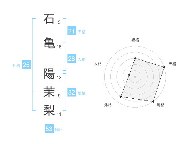 石亀 陽茉梨さんを姓名の画数から五運を鑑定