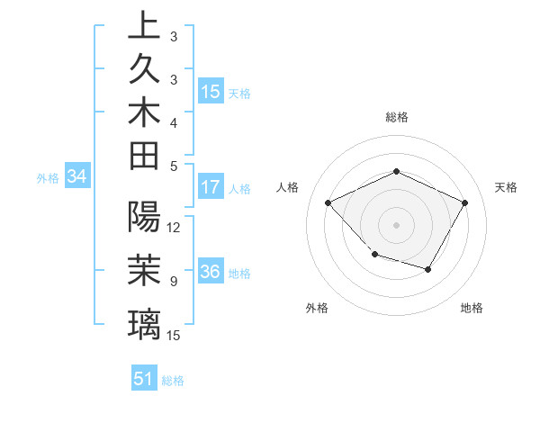 上久木田 陽茉璃さんの総格は51画の3点!