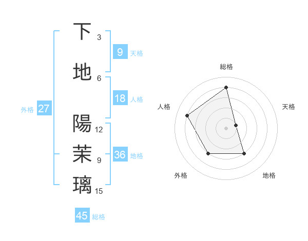 下地 陽茉璃さんの総格は45画の4点