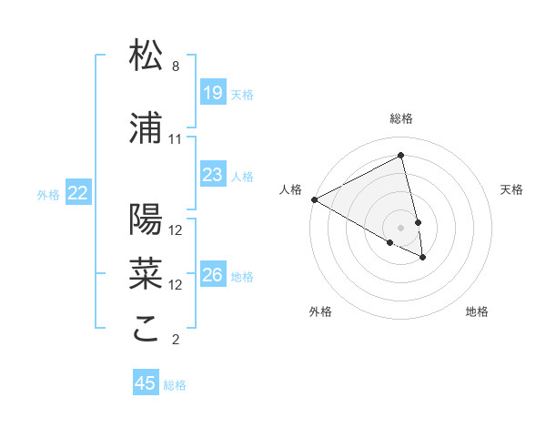 松浦 陽菜こさんを姓名の画数から五運を鑑定