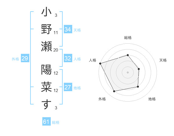 小野瀬 陽菜すさんを姓名の画数から五運を鑑定