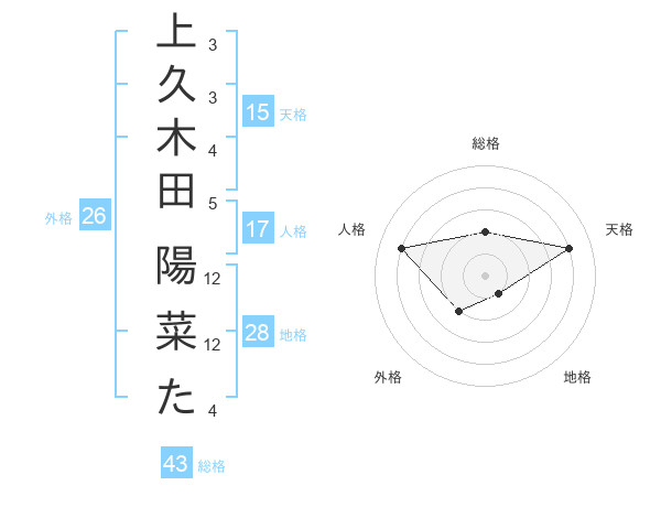 上久木田 陽菜たさんを姓名の画数から五運を鑑定
