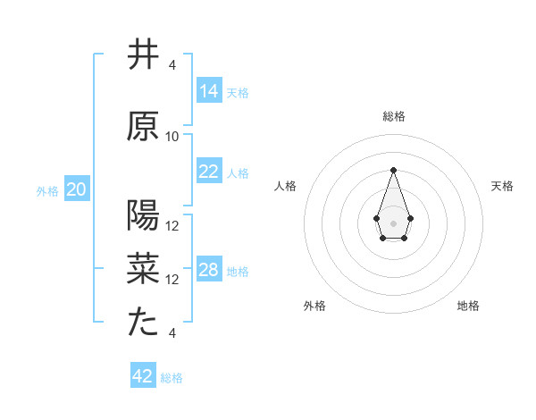 井原 陽菜たさんの総格は42画の3点!