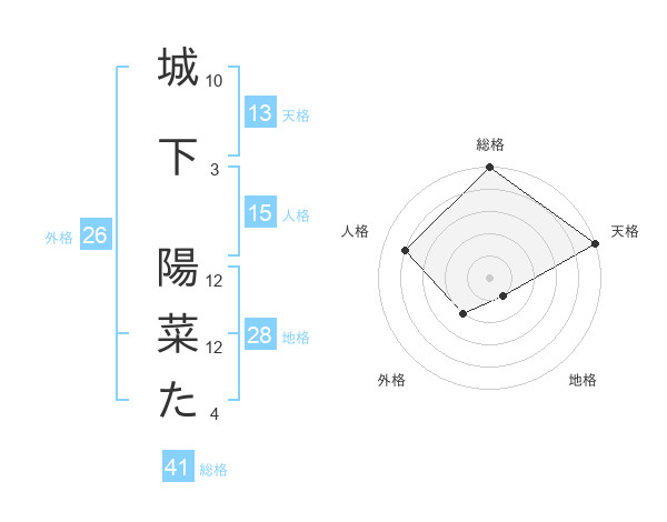 城下 陽菜たさんを姓名の画数から五運を鑑定