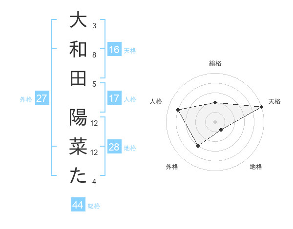 大和田 陽菜たさんの天格は16画の5点!