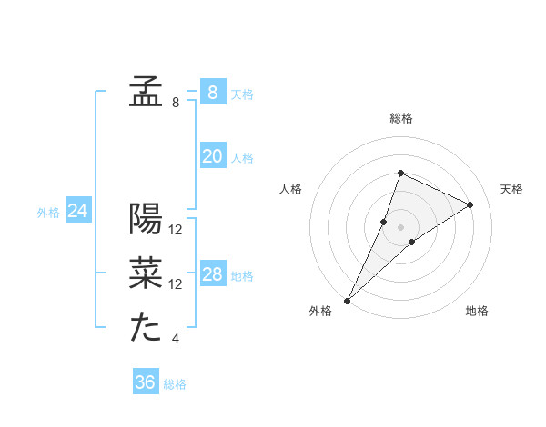 孟 陽菜たさんを姓名の画数から五運を鑑定