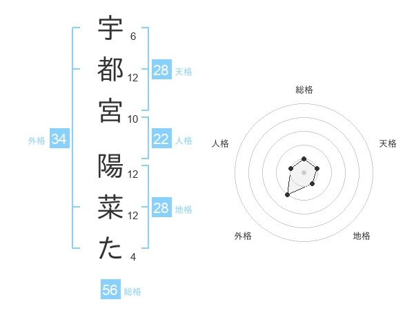 宇都宮 陽菜たさんを姓名の画数から五運を鑑定