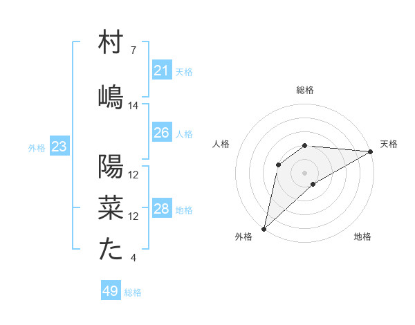 村嶋 陽菜たさんを姓名の画数から五運を鑑定