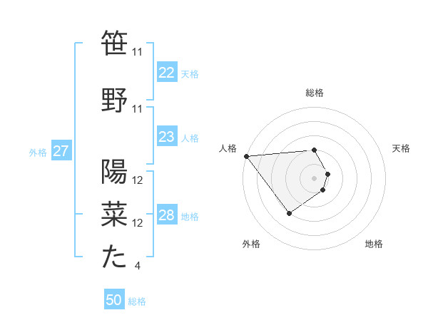 笹野 陽菜たさんの総格は50画の2点!