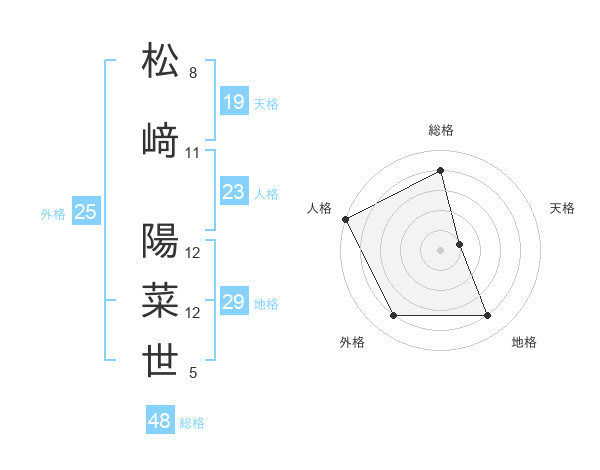 松﨑 陽菜世さんを姓名の画数から五運を鑑定