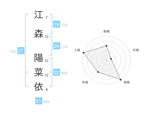 江森 陽菜依さんの総格は51画の3点!