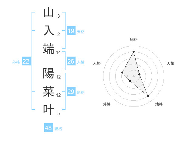 山入端 陽菜叶さんを姓名の画数から五運を鑑定