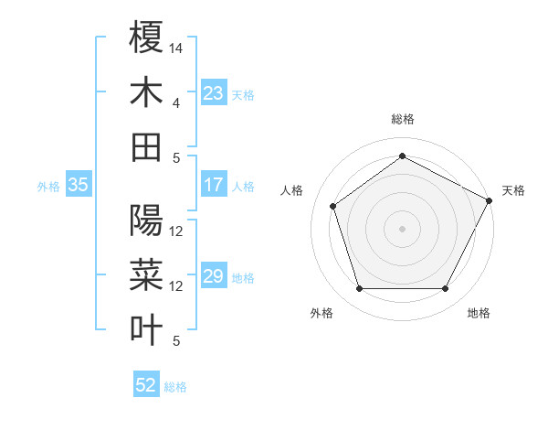 榎木田 陽菜叶さんの総格は52画の4点!
