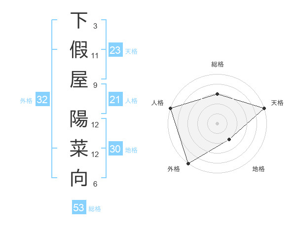 下假屋 陽菜向さんの総格は53画の3点!