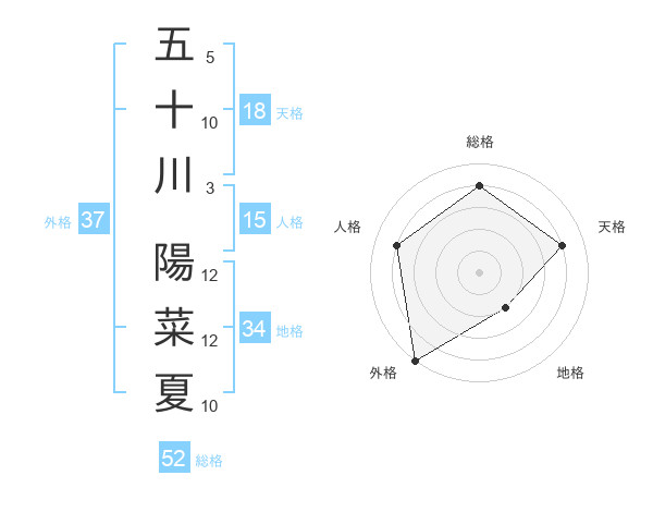 五十川 陽菜夏さんの外格は37画の5点!