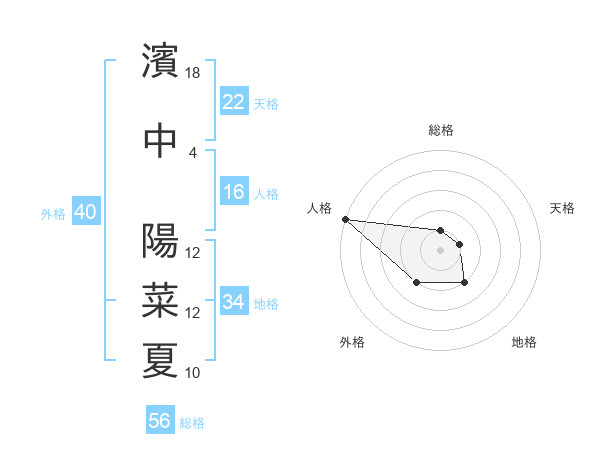 濱中 陽菜夏さんを姓名の画数から五運を鑑定